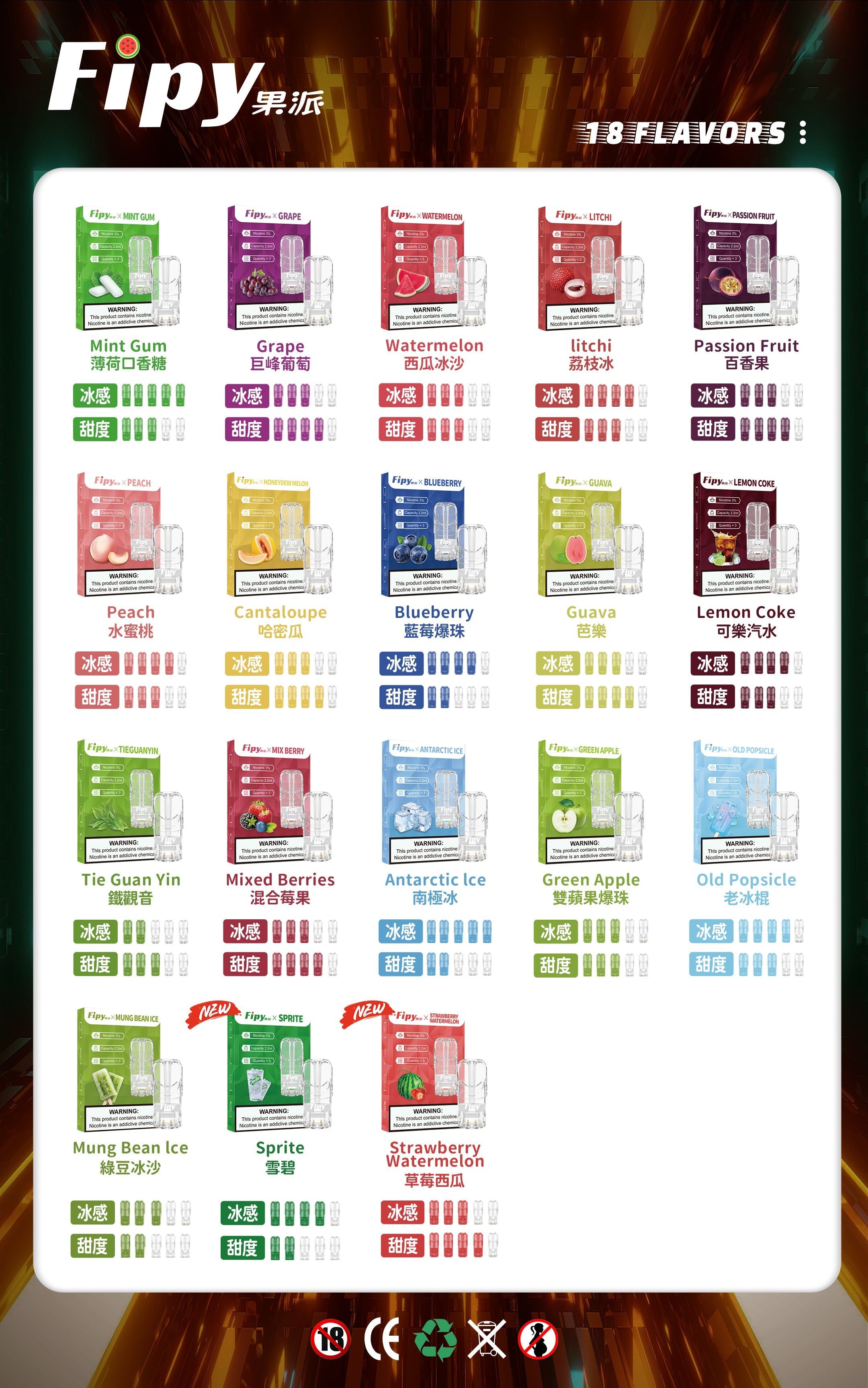 體驗果香醇鬱,Fipy果派煙彈通用一代主機,風靡登場!適用於sp2s、lana等一代主機,18款絕妙口味,滿足你無論蕾的口味。是經典的薄荷醇,還是獨特的果味組合,果派煙彈將帶給你無與倫比的味覺享受。醇香滑順的口感,讓你沉醉其中,無法自拔。